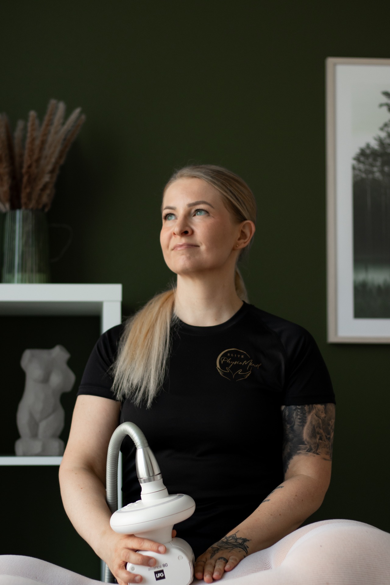 Fysioterapeuttina olen erikoistunut LPG-hoitoihin ja käytän laitetta aina anatomiaa ja faskiaalisia rakenteita ajatellen. Tunnustelen kudosta samalla käsin, jotta hahmotan miten kehosi reagoi hoitoon. LPG-hoitopää on minulle kuin kolmas käsi. Jos arvioin, että jokin muu hoitomuoto tukee tilannettasi paremmin, suosittelen sitä. Teen myös manuaalista fasciahoitoa yhdistettynä LPG-hoitoon ja hoidan tarvittaessa merkittävimmät triggerpisteet ensin käsin.